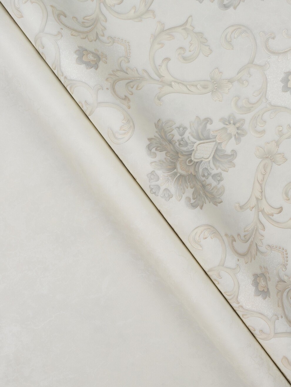 Дамасковый рисунок, напоминающий переплетение тонких нитей, создаёт эффект глубины и объёма. Этот классический орнамент гармонично вписывается в различные стили интерьера, от неоклассики до традиционного дизайна.