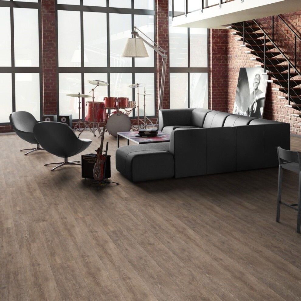 - Эффект натурального дерева — глубокая текстура и реалистичные оттенки придают полу дорогой и статусный вид.